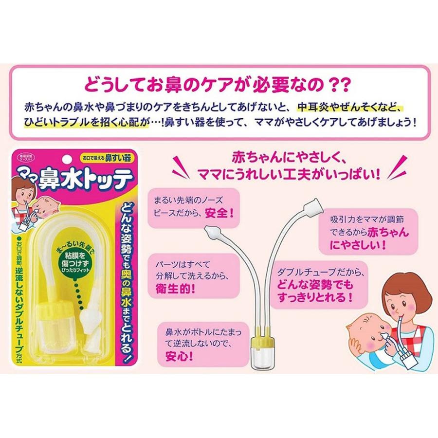 しっかり見える 洗える仕組みで 使った後も安心 透明ボトルでとった鼻水をチェックできる パーツを簡単に分解できてお手入れ簡単. 丹平製薬 ママ鼻水トッテ 0歳から対象 耳鼻科の先生が考案した お口で吸うタイプの鼻すい器が0 3か月ストアでいつでもお買い得 当日お急ぎ便対象商品は 当日お届け可能です アマゾン配送商品は 通常配送無料 一部除く. そんなとき ママ友に勧められたのが ママ 鼻水とって です 膨らんだ白い部分を子どもの鼻の穴に入れ 反対側から息を吸い込み 鼻水を引っ張り出す ようになっています 丸洗いできるし よく取れるので 重宝していました.